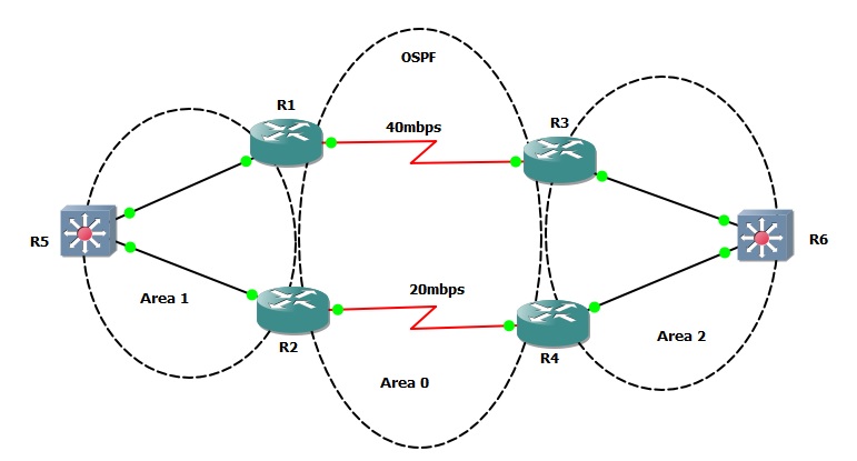 Chào mọi người, hôm rồi em tham khảo trên INE có bài toán về load balancing với OSPF nên có topology tự dựng trên GNS thế này