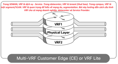 - VRF = Tách biệt bảng định tuyến → giống như chạy nhiều router ảo trên cùng thiết bị.