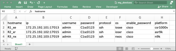 pyats create testbed file --path devices.xlsx --output testbed.yaml