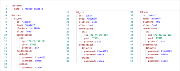 📍 Bạn dùng định dạng gì để viết tệp testbed trong pyATS?