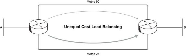 - Variance không phân chia đều như equal-cost. Lưu lượng sẽ được phân phối theo tỷ lệ nghịch với metric. Ví dụ, đường MPLS sẽ vẫn gánh nhiều tải hơn, nhưng đường T1 vẫn được “chia phần công việc” thay vì idle.