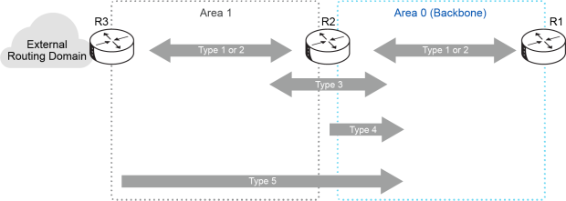 👉 Ví dụ: R3 (ASBR) quảng bá mạng Internet 0.0.0.0/0 dưới dạng Type 5 LSA. Các router khác nhờ đó biết “đường ra Internet” nằm ở đâu.